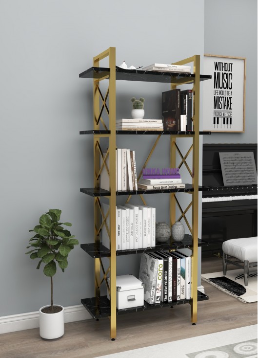 GOLD KİTAPLIK 5 Raflı Modern Kitaplık Metal Kitaplık Ev Ofis Rafı Dosya Kitap Rafı