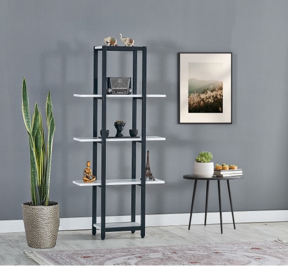 Toplamda birden fazla katlı raf düzeni, çeşitli boyutlardaki çiçekleri, kaktüsleri, sukulentleri, mumları veya kitapları kolayca yerleştirmenize imkân tanır. Katlar arasındaki ideal yükseklik, bitkilerin ışık almasını kolaylaştırırken dekoratif eşyalar için de ferah alan sunar.